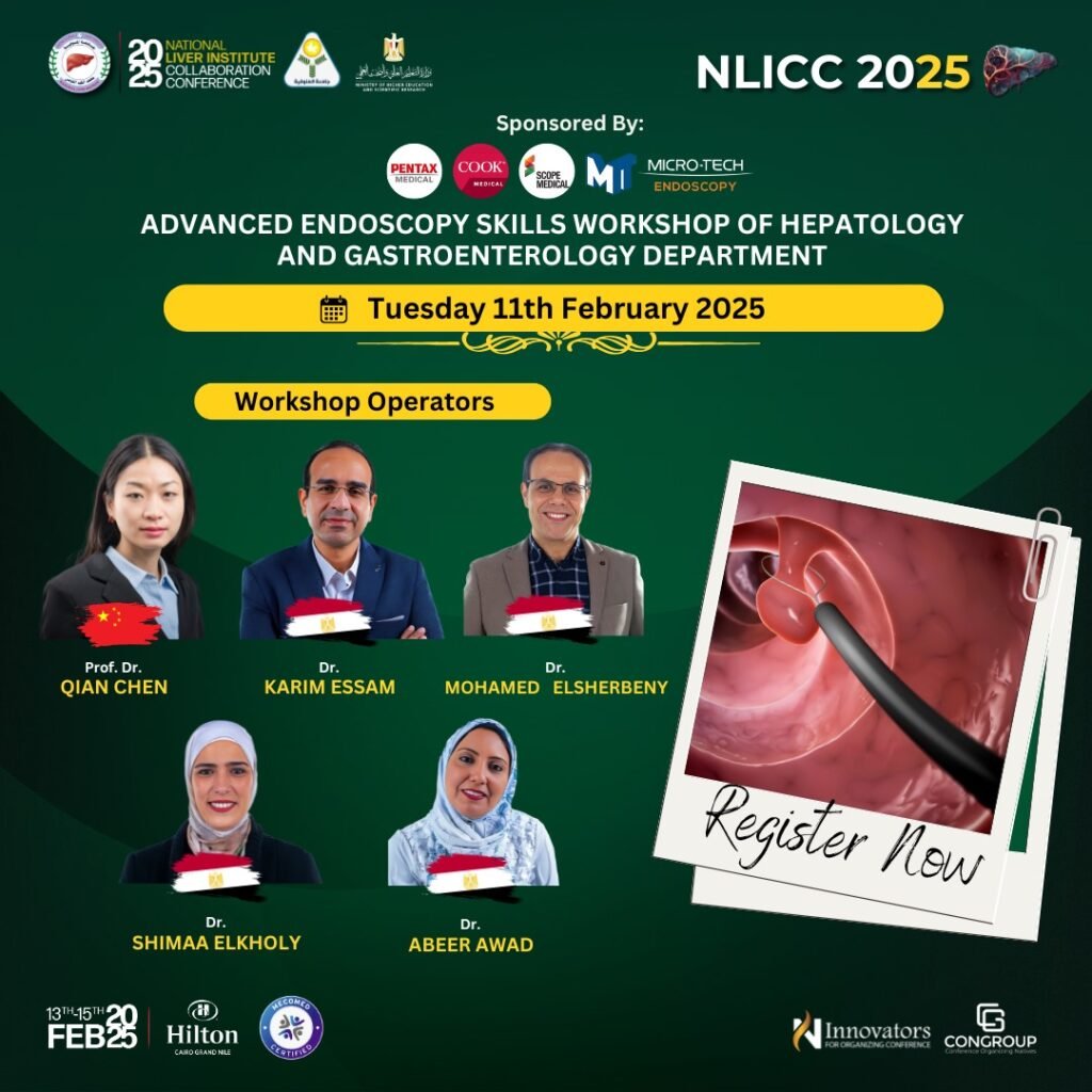 Join us for a comprehensive, hands-on Advanced Endoscopy Skills Workshop during NLICC 2025, focusing on the latest procedures in Hepatology and Gastroenterology. This intensive 5-hour training course, led by Professor Dr. Ahmed Attia, is designed to empower medical professionals with cutting-edge diagnostic and therapeutic endoscopic skills.